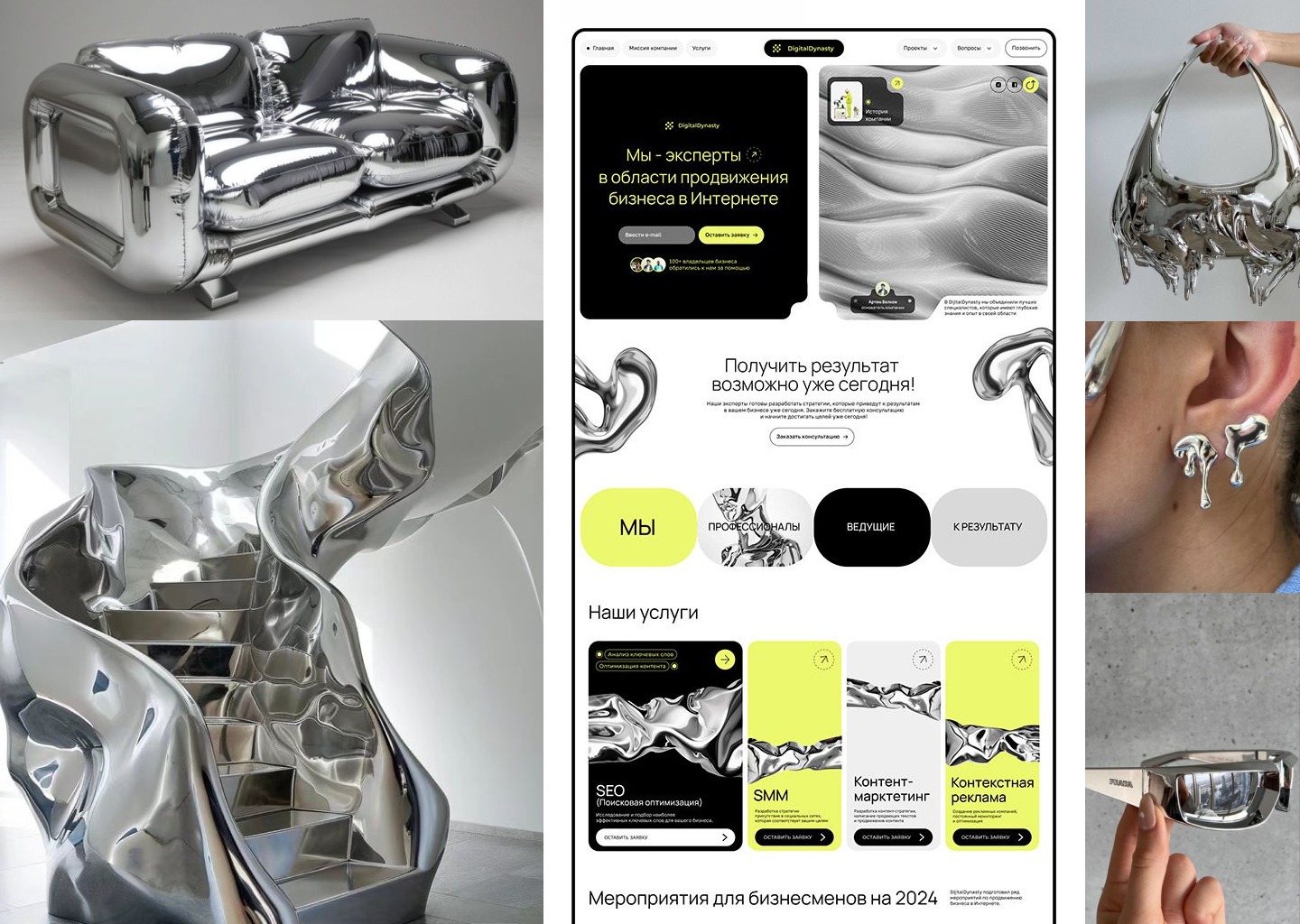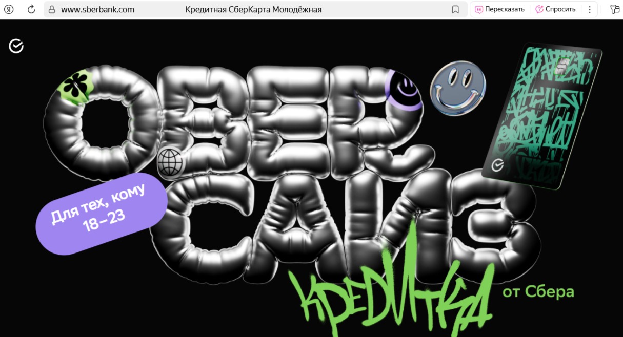 Примеры непрерывной эволюции можно увидеть и в России. Достаточно взглянуть на Сбер: его сайты и лендинги регулярно меняются под задачи и аудиторию. Яркие «металлические» визуалы, рассчитанные на молодежь, — лишь один из этапов длинного пути.